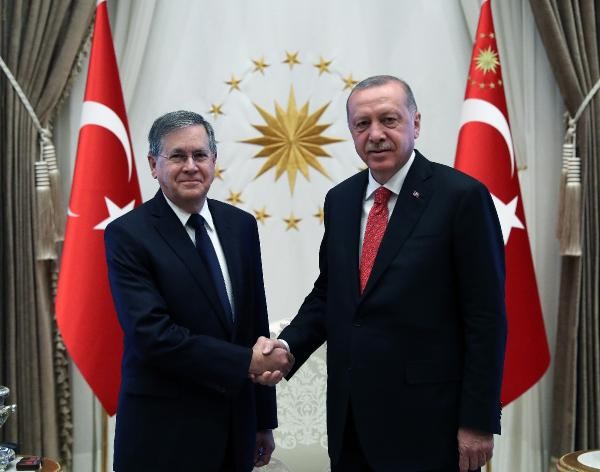 Büyükelçi Satterfield, bazı büyükelçilik mensuplarını Erdoğan'a takdim ettikten sonra fotoğraf çektirildi.