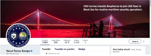 Avrupa'daki Amerikan donanma güçleri, cumartesi günü Twitter'daki duyurusunda Carney gemisinin İstanbul Boğazı'ndan geçişini ve Yavuz Sultan Selim Köprüsü'nü gösteren bir fotoğraf kullandı. Amerikan donanması, bu fotoğrafı Avrupa'daki güçlerinin Twitter sayfasının banner görseli de yaptı.