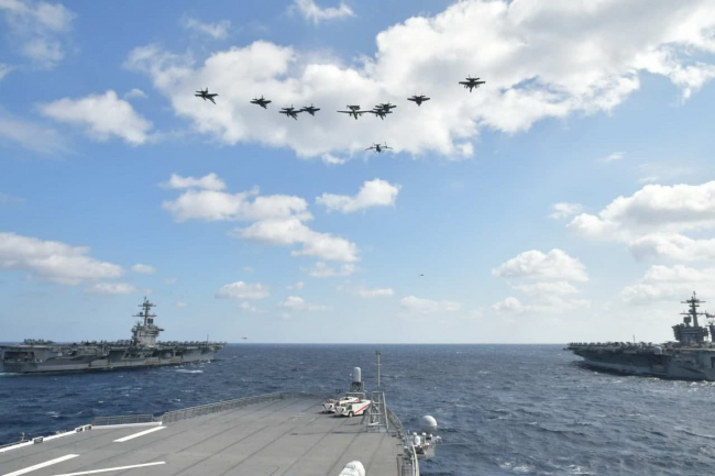 Bunun hemen ardından ABD Donanmasına ait nükleer güçle çalışan uçak gemisi Carl Vinson ve USS Abraham Lincoln nükleer gemisinin de aralarında bulunduğu filo, Japonya Donanmasına ait savaş gemilerinin de katılımıyla Filipin Denizinde ortak tatbikat gerçekleştirdi. Asya-Pasifik bölgesinde gerçekleştirilen ortak tatbikatın görüntüleri paylaşıldı.