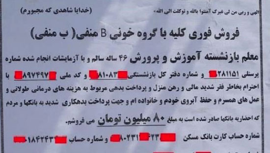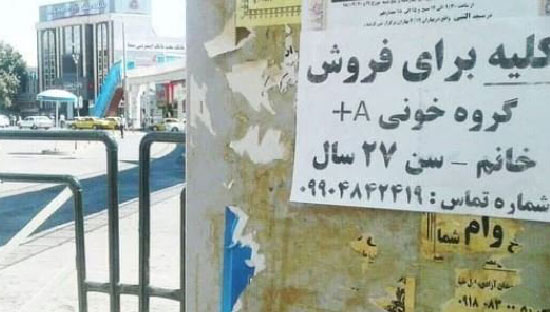 İran’daki caddeler üzerinde çok sayıda “sahibinden satılık böbrek” ilanı var.