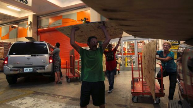 Ulusal Muhafızların göreve çağrıldığı Porto Riko'da halk, gıda, su, jeneratör, pil ve diğer ihtiyaç maddelerini stoklamak için marketlerin önünde uzun kuyruklar oluşturdu.