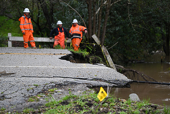 Son 3 ayda ard arda gelen ve “atmosferik nehir” adı verilen hava dalgası nedeniyle eyaletin yüksek kesimleri kar altında kalırken, sahil ve alçak kesimleri de aşırı yağmur ve sellere maruz kaldı.