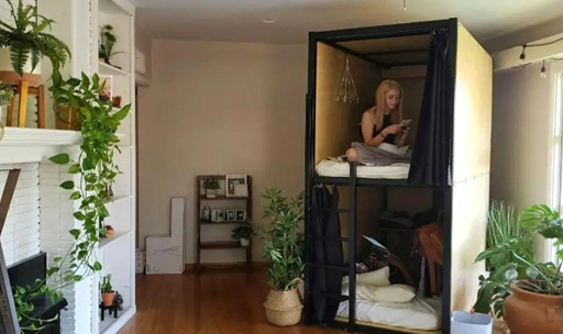 Brownstone Shared Housing adlı paylaşımlı konut girişimi, ufak ranza bölmelerini aylık 800 dolara kiralıyor. Bölmeler sayesinde üç odalı bir evde 14 kişi kalabiliyor. Evde iki de tuvalet bulunuyor.