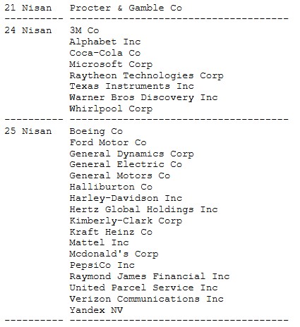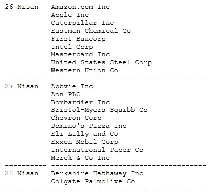 Bazı şirket bilançolarının açıklanması beklenen tarihleri şu şekilde: