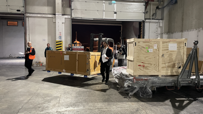 Üzerinde "diplomatik kargo" yazısı bulunan özel kasalarla taşınan eserler, Antalya Müze Müdürü Mustafa Demirel ve Kültürel Miras Koruyucuları ekiplerince teslim alındı. Kamyona yüklenen eserler, eskort eşliğinde Antalya Müzesi'ne getirildi.