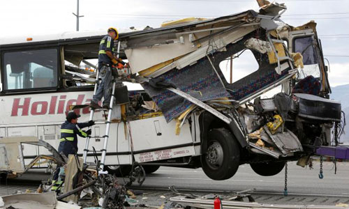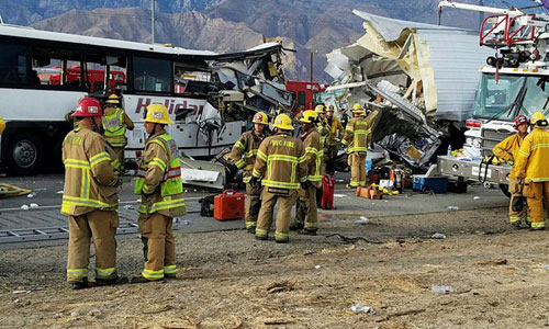 Otobüsün neredeyse yarısının TIR'ın dorsesine girdiği çarpma sonucu otobüs şoförünün de aralarında olduğu 13 kişi hayatını kaybetti, 5'i ağır 31 kişi yaralandı. Kaliforniya Otoyol Polisi, yaralıların Palm Springs bölgesindeki hastanelere kaldırıldığını açıkladı.