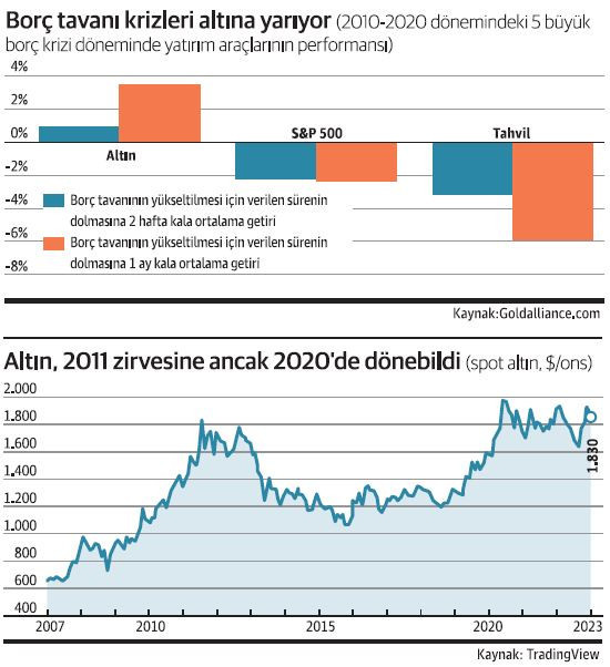 Altın, JPMorgan'ın bu dönemde elde tutulmasını önerdiği varlıklardan biridir. JPMorgan geçen ay bir raporda, "Düzensiz bir borç tavanı dönemi potansiyeli, küresel yatırımcıların ABD'nin varlık sınıflarındaki fazla ağırlıklarını yeniden dengelemesi için başka bir tetikleyici unsur oluşturuyor. Para birimlerini ve Japon Yeni, İsviçre Frangı ve altın gibi değerli metallere yatırım düşünülebilir” demişti.