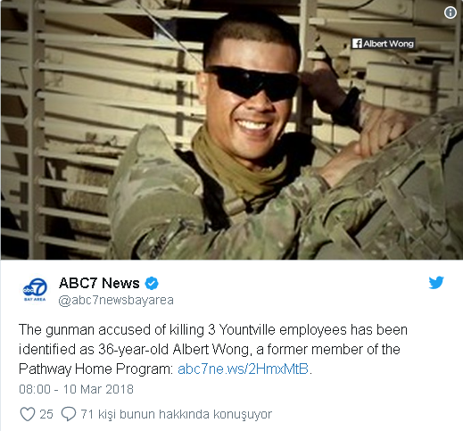 Albert Wong (36) isimli saldırganın eski bir piyade olduğu ve travma sonrası stres bozuluğu yaşayan askerler programından 2 hafta önce çıkarıldığı öğrenildi.