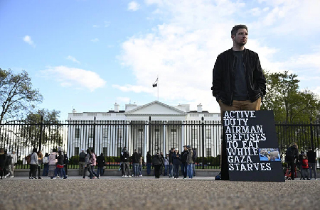 ABD Hava Kuvvetleri mensubu ve "Barış İçin Gaziler" (VFP) üyesi olan Hebert, Beyaz Saray önünde 31 Mart'tan bu yana "işgale son verin" çağrısıyla yaptığı açlık grevini anlattı.