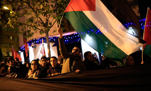 Filistin bayrakları taşıyan protestocular, ABD'nin Kudüs ile ilgili kararının tarihi hata olduğunu ifade etti.