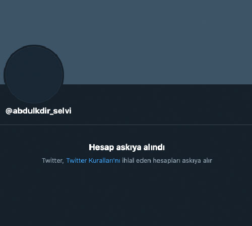 "Hesap askıya alındı - Twitter, Twitter Kuralları'nı ihlal eden hesapları askıya alır."