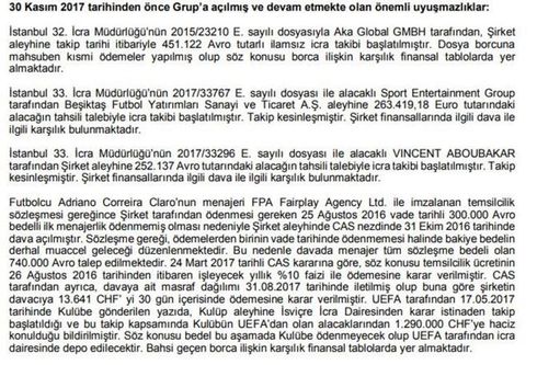 CNN Türk'ün haberine göre, siyah beyazlı kulübün finansal tablolar ile ilgili KAP’a yaptığı açıklamada Kamerunlu oyuncunun 252 bin 137 Euro tutarındaki alacağının tahsil talebiyle icra takibi başlattığı belirtlidi.