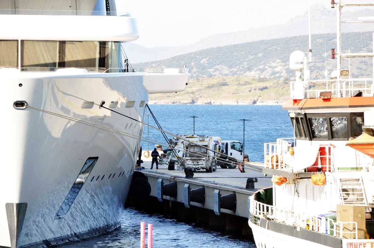 Haftalardır Akdeniz'de dolaşan ve ardından Bodrum'a demirleyen yattaki personelin bazısı ise temizlik yaparken yata yanaşan 6 çöp kamyonunun atık maddeleri aldığı görüldü.140 metre uzunluğundaki lüks yatı ilçede günün konusu olurken yatın ilçede ne kadar kalacağı ile ilgili net bir bulunmadığı belirtildi.