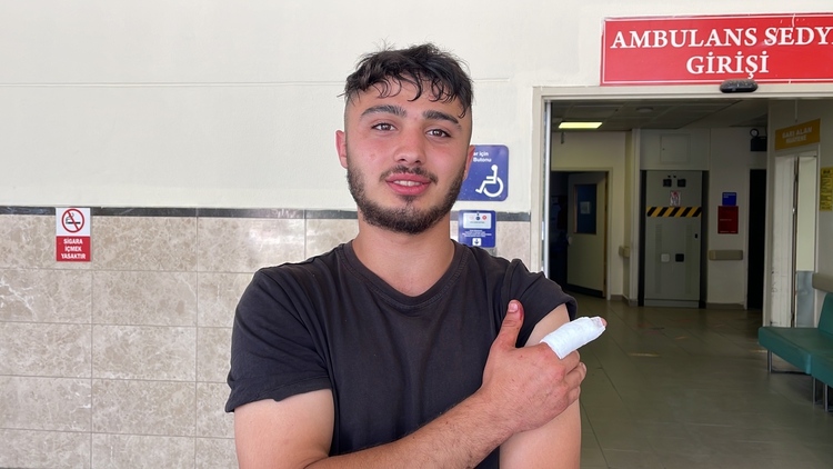 Tedavi edilen Ahmet Cansız, etlerin parçalanması sırasında kesilen eline 3 dikiş atıldığını kaydetti.