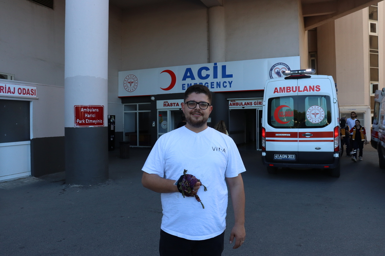 Darıca Farabi Eğitim ve Araştırma Hastanesine gelen Emre Coşkun, kurbanlığı yatırmaya çalışırken elinde kesik oluştuğunu anlattı.