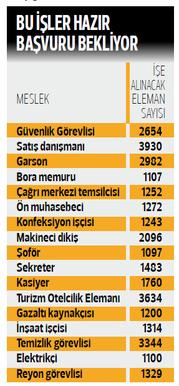 Peki, işverenlerden gelen talepler doğrultusunda en çok eleman aranan meslekler hangisi? İŞKUR kayıtlarına göre; satış danışmanlığı, turizm ve otelcilik elemanı, temizlik görevlisi, güvenlik görevlisi işverenlerin şu sıralar en çok aradığı elemanlar. Nitekim bu 4 meslekte, 19 bine yakın personel aranıyor.