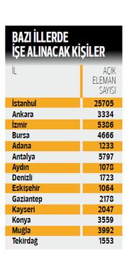 Buna göre istihdam seferberliği kapsamında işverenlerden en çok talep, İstanbul’dan geldi. İstanbul’da 26 bine yakın iş için eleman aranıyor. İstanbul’dan sonra ikinci sırayı ise İzmir aldı. İzmir’de farklı mesleklerden 6 bine yakın iş iç yeni eleman aranıyor. İŞKUR’a gelen talepler çerçevesinde en çok eleman aranan bir diğer ise Antalya oldu. Antalya’da da ağırlığı turizm olmak üzere 6 bine yakın yeni iş olanağı bulunuyor.