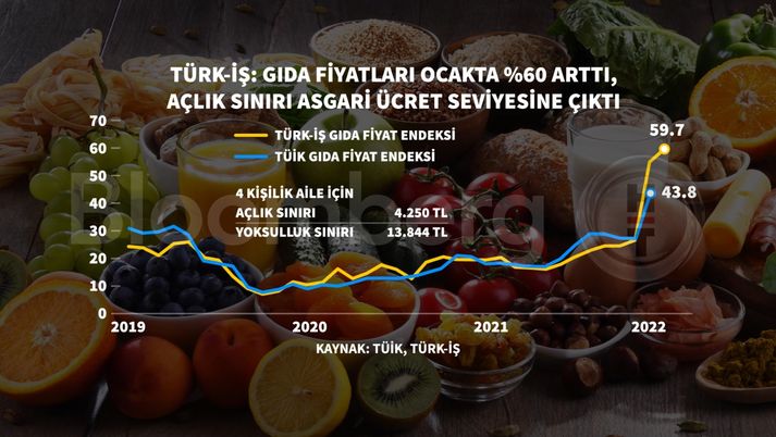 Türk-İş'in 35 yıldır düzenli olarak yaptığı Açlık ve Yoksulluk Sınırı Araştırmasına göre, asgari ücret Ocak ayında, açlık sınırının yalnızca 3 lira üzerinde kaldı.