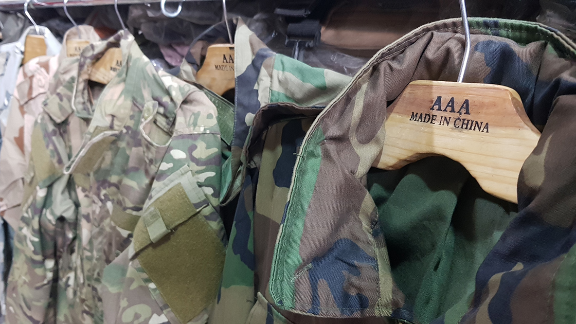 Kuvva-i Merkez semtinde bulunan pazarda artık ABD askeri kıyafetlerinin ve teçhizatlarının kopyaları Çin'den ithal edilerek burada satılıyor.