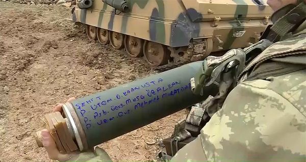 Söz konusu mermi, Afrin'in kuzeybatısında belirlenen terörist gruba yönelik atışta kullanıldı. Şehitlerin isimleri yazılı olan havan mermisi, yapılan atışla terörist grubun bulunduğu hedefi vurdu.