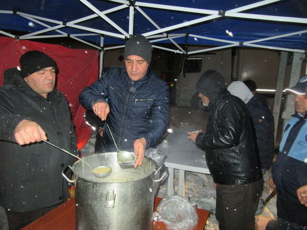 "Sandıklı Belediyesi tarafından yolda kalan vatandaşlarımız için çorba ikramı yapıyoruz. Malumunuz Afyonkarahisar-Antalya yolu trafiğe kapalı. Otogar kavşağındayız. Tırlar, kamyonlar ve diğer araçlar yol kapalı olduğu için gidemiyor. Burada kalan vatandaşlara sıcak çorba ikram ediyoruz. Ayrıca konaklama ihtiyacı olanları da bünyemizde bulunan Hüdai İşletme Müdürlüğümüze gönderiyoruz. Konaklama ihtiyaçlarını da bu şekilde gideriyoruz. Allah herkesin yardımcısı olsun. Bu kış gününde biz yol açılıncaya kadar sabaha kadar burada olacağız."