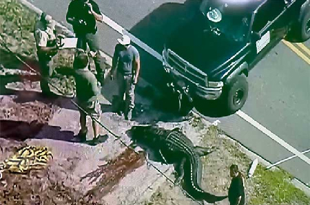 ABD'nin Florida eyaletinde yer alan Clearwater'da bulunan yaklaşık 4.5 metre uzunluğundaki timsah yetkilileri alarma geçirdi. Olay bölge sakinlerinden birinin ağzında cansız birinin bedenini taşıyan devasa bir timsah gördüğünü ihbar etmesi ile ortaya çıktı.