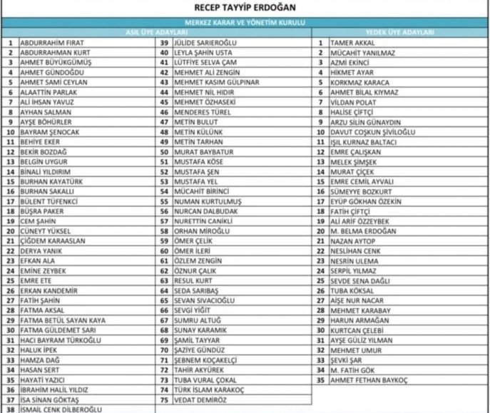 Genel Merkez Parti İçi Demokrasi Hakem Kurulu listesinde; Yalçın Akdoğan, Zeyid Aslan, Yaşar Bahçeci yer alırken, yedek üye aday listesinde, Alim Tunç ve Necip Filiz yer aldı.