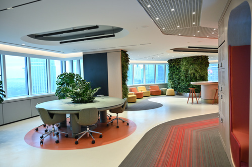 Akbank’taki mimari dönüşümle, iş birliğini ve etkileşimi artıran, birlikte çalışmayı, yeni fikirler üretmeyi kolaylaştıran alanlar yaratılıyor. Esnek kullanıma uygun ve sanat ile zenginleştirilen yeni tasarım, Akbanklıların yaratıcılığını destekliyor, daha verimli, aynı zamanda daha keyifli çalışabilmeleri için yeni alanlar sunuyor.