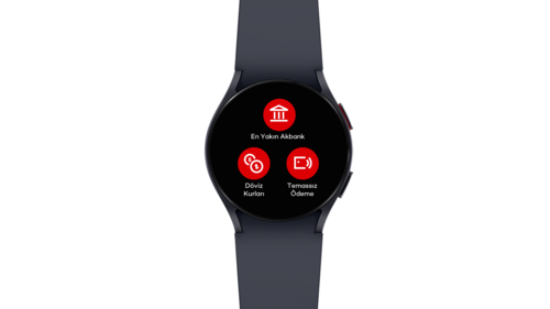 Akbank’ın tasarladığı uygulamada kullanıcılar akıllı saatleri üzerinden üç fonksiyonlu bir menüye erişiyor: Temassız Ödeme, En Yakın Akbank ve Döviz Kurları. Böylece Samsung kullanıcısı Akbanklılar, akıllı saatlerini POS cihazına yaklaştırarak temassız ödeme yapabiliyor ve aynı zamanda farklı bankacılık işlemlerini de kolay ve hızlı bir şekilde gerçekleştiriyor.