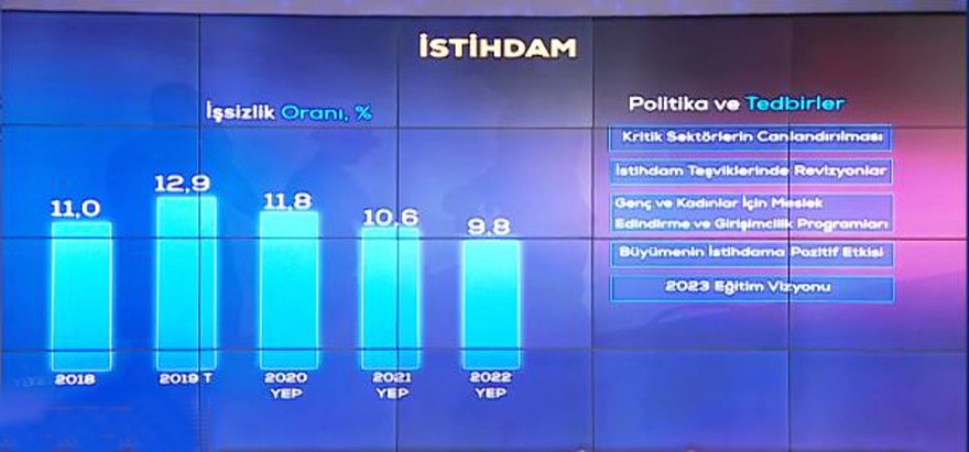 Son bir yıldaki istihdam kaybının üçte ikisi inşaat sektöründen kaynaklandı. Tarım sulama ve sera yatırımlarının desteklenmesiyle tarımda arzın artırılması ile tarım alanında işsizliğin azaltılması sağlanacak. Sanayi ve hizmet sektöründe ve turizm alanında istihdam artacaktır. Gençlerde işsizlik özellikle çok popüler talebi olan kodlama bilgi işlemci bir çok alandaki hedef odaklı sertifika ile maksimum genç istihdam edilecek. Yeni eğitim sisteminin yetkinlik bazlı meslek seçimi ile ilgili yeni mesleklere ilişkin yönlendirmeleri ile orta vadede işsizlikle mücadele edeceğiz.