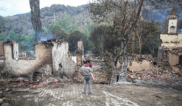 Köy sakinleri ile hayvanlar, ekiplerce güvenli bölgeye tahliye edildi. Yangında köyün büyük kısmında hasar oluştu.