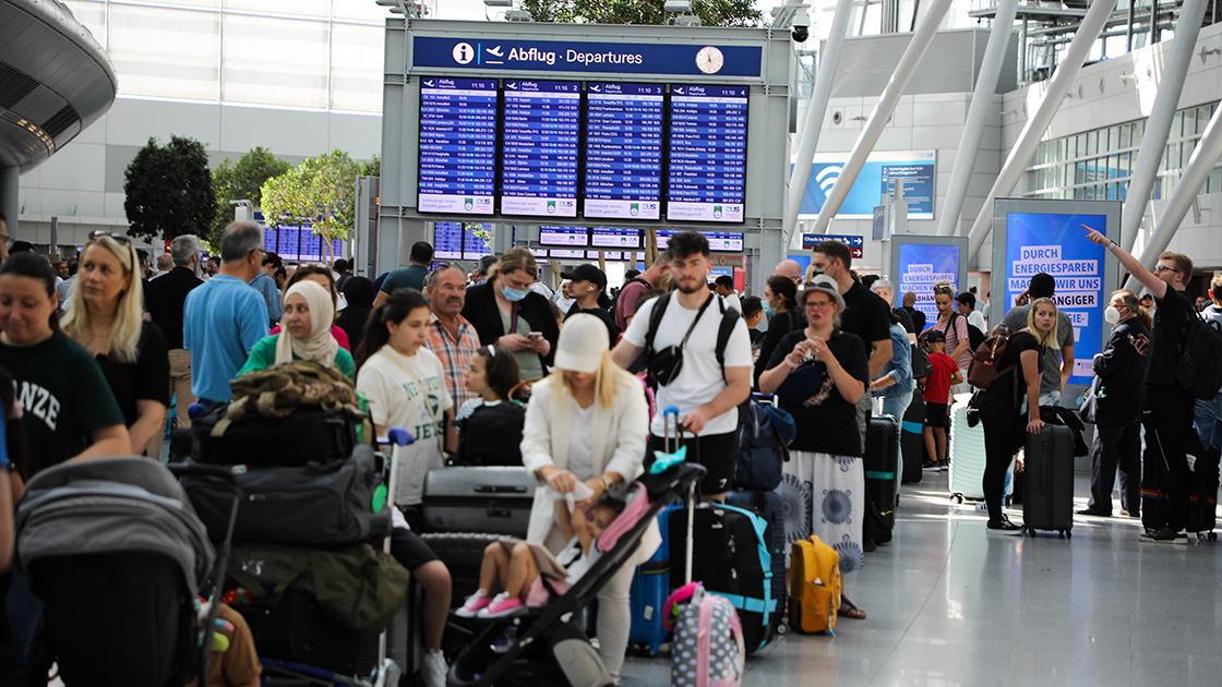 Düsseldorf Havalimanı'nda tatil bölgelerine gitmek isteyen Almanlar, Türkiye'ye izne gitmek isteyen Türkler ve hac vazifesini yerine getirmek için kutsal topraklara gidecek olanların uzun süre beklemesi gerekti.