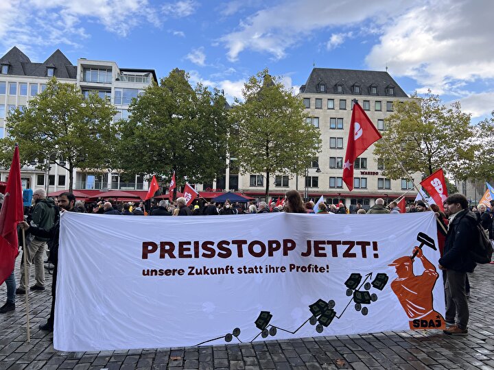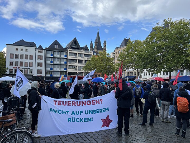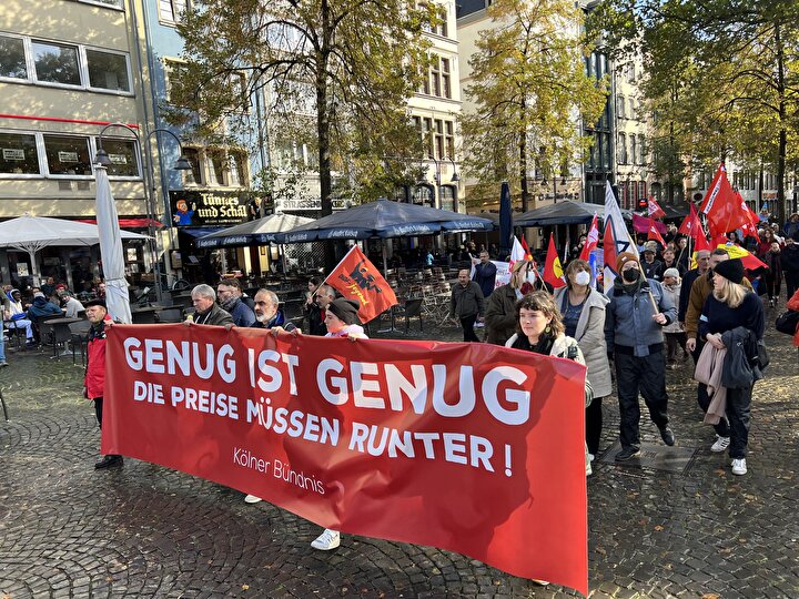 Yalnızca Köln'de on binlerce kişinin fiyat artışları yüzünden yoksulluğa sürüklendiğinin vurgulandığı konuşmalarda, artan fiyatlar sebebiyle birçok kişinin gaz ve elektrik faturalarını ödeyemeyeceği, enerji şirketleri başta olmak üzere birçok fırsatçının da bu durumdan faydalanıp karlarına kar kattığı söylendi.