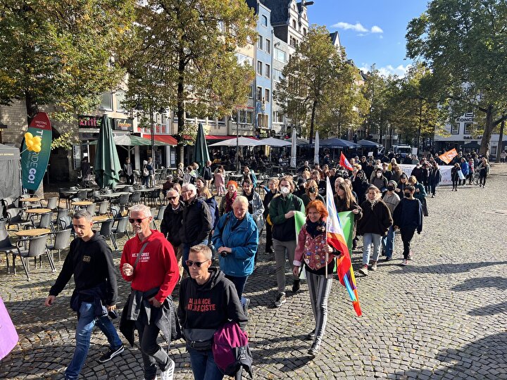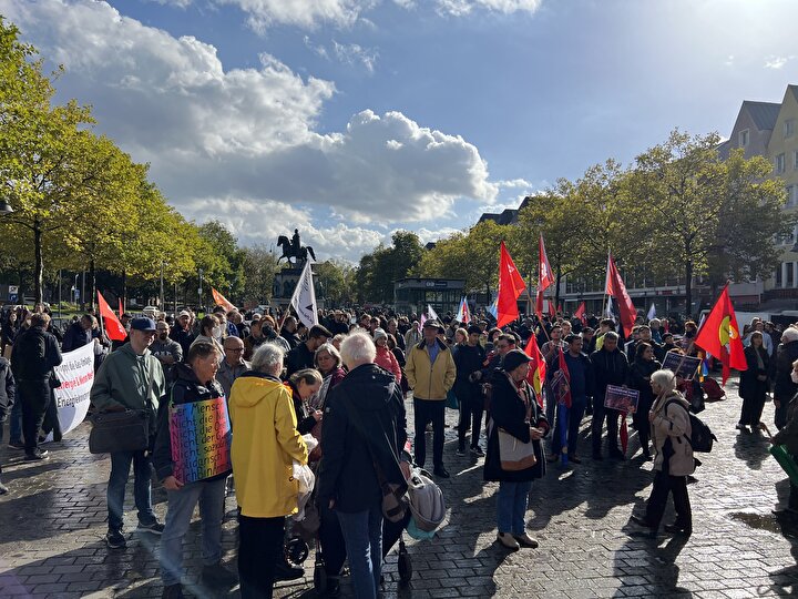 Köln'de bir araya gelen vatandaşlar, "Yeter artık: Fiyatlar düşmek zorunda" temasıyla önce protesto gösterisi düzenleyip konuşmalar yaptı, sonra sloganlar atarak tarihi Köln Katedrali'ne yürüdü.