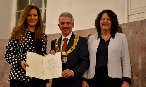 Frankfurt Büyükşehir Belediye Başkanı Peter Feldmann, yaklaşık 500 davetlinin katıldığı törende, 2017 yılının başarılı şahsiyetlerine sertifikalarını takdim etti.