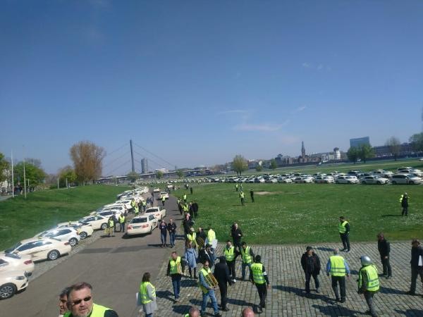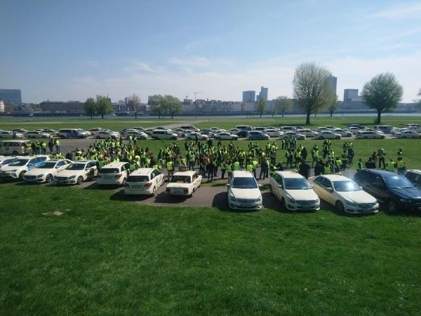 Köln'deki Gummersbacher Caddesinden yola çıkan yaklaşık 700 taksici, konvoy halinde şehir merkezinden geçerek, Kanal Caddesinde toplandı. Sarı yelek giyen taksicilerin, araçlarına ‘Taksi şoförleri vergi ödüyor, ya Uber?’, ‘Taksiler tarifeye bağlı, ya Uber?’ gibi sloganalar içeren döviz astığı görüldü. Taksi şoförlerinin iki saatten fazla süren eyleminden şehir merkezindeki araç trafiği olumsuz etkilendiği belirtildi.