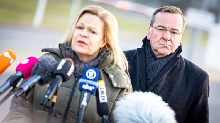 Almanya İçişleri Bakanı Nancy Faeser ile Savunma Bakanı Boris Pistorius, Wunstorf Hava Üssü'nde Kahramanmaraş merkezli depremler nedeniyle Türkiye'ye gönderilen yardımlara ilişkin ortak basın toplantısı düzenledi. Bakanlar, yardımların devam ettiğini belirtti.