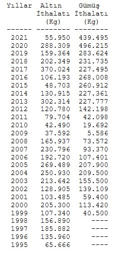 Borsa İstanbul Kıymetli Madenler Piyasası verilerine göre, aynı ayda gümüş ithalatı 30 bin 599 Kg oldu. Geçen yılın aynı ayında gümüş ithalatı 46 bin 203 Kg olmuştu.