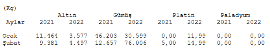 Türkiye'nin 2022 yılı Şubat ayında altın ithalatı geçen yılın aynı ayına göre %52,1 düşüşle 4 bin 497 Kg oldu. 2021 yılının aynı ayında ithalat 9 bin 381 Kg seviyesinde bulunuyordu.
