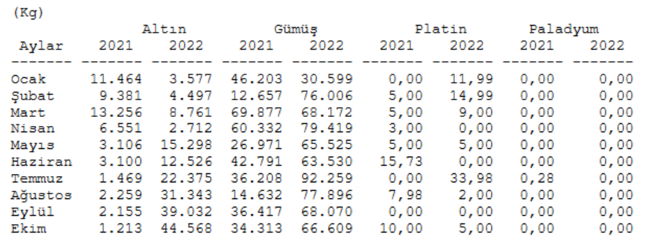 Borsa İstanbul Kıymetli Madenler Piyasası üzerinden altın ithalatı ekim ayında 44 bin 568 kg ile 63 ayın en yüksek seviyesine geldi. 2021 yılının aynı ayında ithalat 1.213 kg seviyesinde bulunuyordu.
