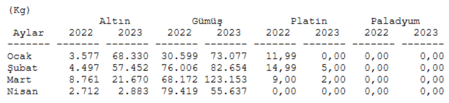 Aynı ayda gümüş ithalatı ise 55 bin 637 kg ile 2022 yılı Ocak ayından bu yana en düşük seviyeye geldi.