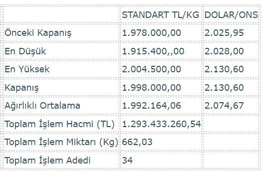 Tüm metallerde toplam işlem hacmi ise 1 milyar 664 milyon 986 bin 807,74 lira düzeyinde gerçekleşti.