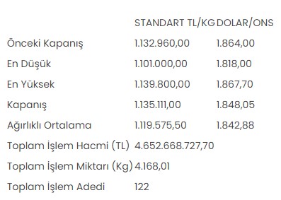Tüm metallerdeki toplam işlem hacmi de 4 milyar 655 milyon 282 bin 746,43 lira düzeyinde gerçekleşti.