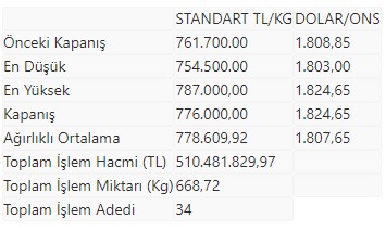 Tüm metallerdeki toplam işlem hacmi ise 514 milyon 176 bin 60,51 lira düzeyinde gerçekleşti.