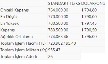 KMKTP'de, altında gerçekleşen toplam işlem hacmi 723 milyon 982 bin 195,40 lira, işlem miktarı ise 935,47 kilogram oldu.