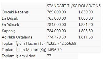 Tüm metallerdeki toplam işlem hacmi ise 1 milyar 325 milyon 742 bin 656,69 lira düzeyinde gerçekleşti.