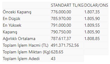 Tüm metallerdeki toplam işlem hacmi de 535 milyon 331 bin 472,57 lira düzeyinde gerçekleşti.