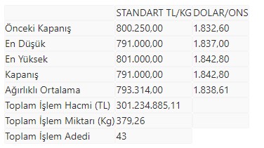 Tüm metallerdeki toplam işlem hacmi de 309 milyon 718 bin 185,76 lira düzeyinde gerçekleşti.