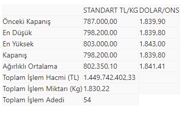 Tüm metallerdeki toplam işlem hacmi de 1 milyar 449 milyon 742 bin 402,33 lira düzeyinde gerçekleşti.