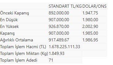 KMKTP'de, altında gerçekleşen toplam işlem hacmi 1 milyar 678 milyon 225 bin 111,33 lira, işlem miktarı ise 1.849,93 kilogram oldu.